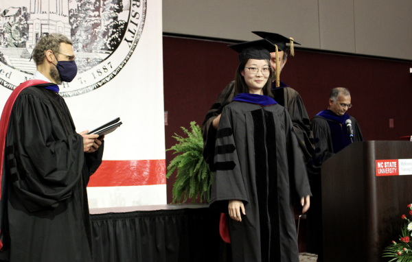 About 150 undergraduate and graduate students, along with friends and families, gathered in the McKimmon Center on Friday, May 6, for the Spring 2022 Commencement Ceremony. Alumnus and CCEE Advisory Board member Dan Pleasant (BSCE 1972, MCE 1973) delivered the baccalaureate address, speaking on the importance of leadership built on the ability to effectively communicate, think creatively and follow one’s passions.