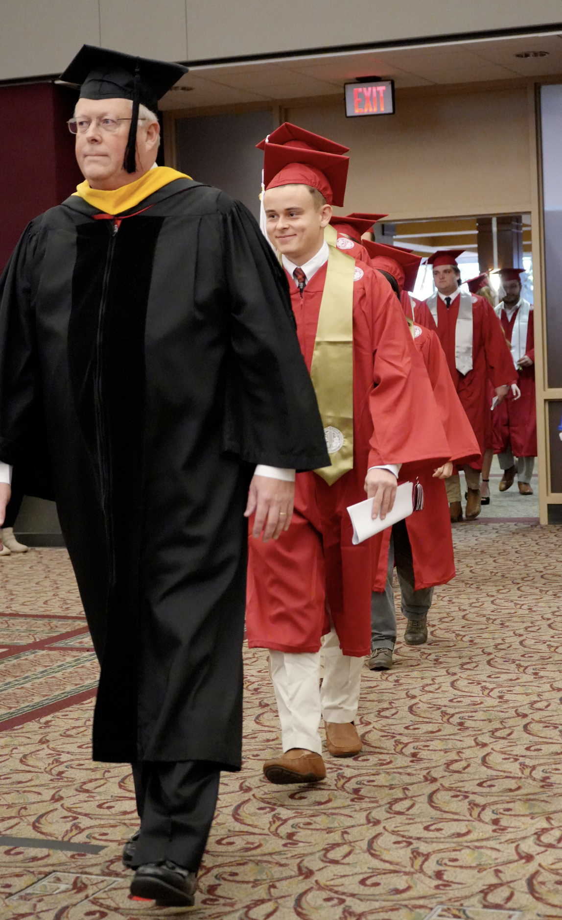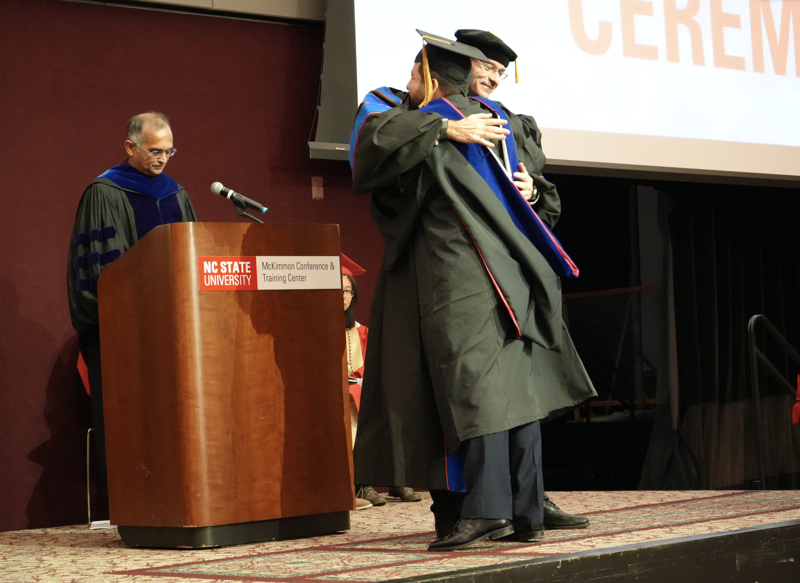 About 95 undergraduate and graduate students, along with friends and families, gathered in the McKimmon Center on Friday, December 16, for the Fall 2022 Commencement Ceremony. Alumnus and S&ME Vice President Wes Lowder (MSCE 1985) delivered the baccalaureate address, speaking on the importance of developing trusting relationships, striving to continue learning new things, and planning for the future while also living in the present.