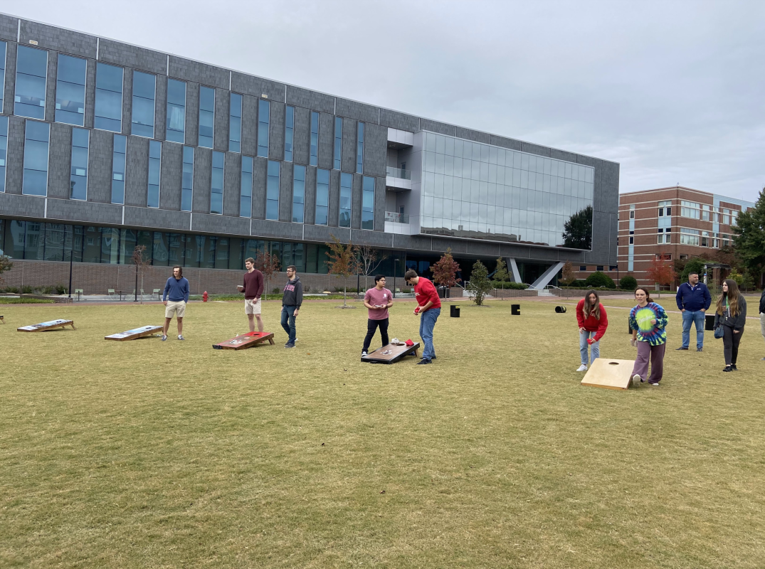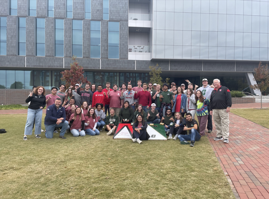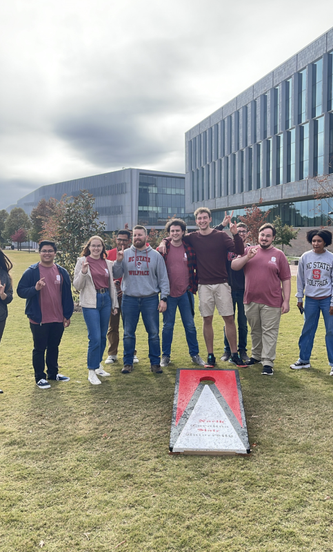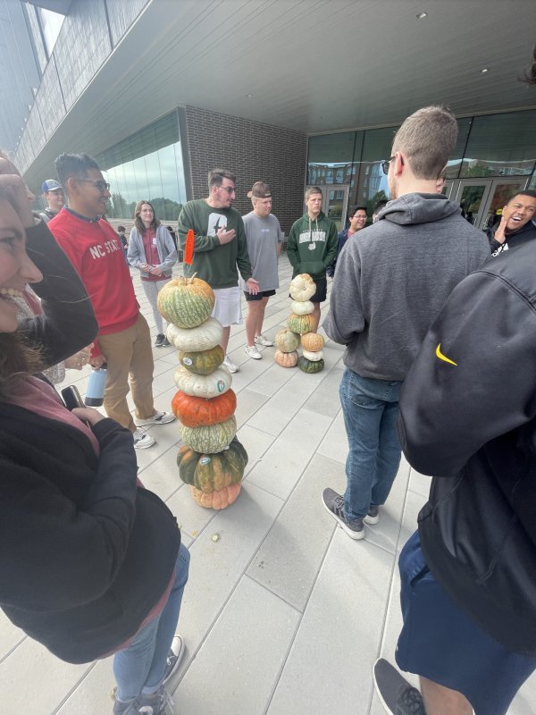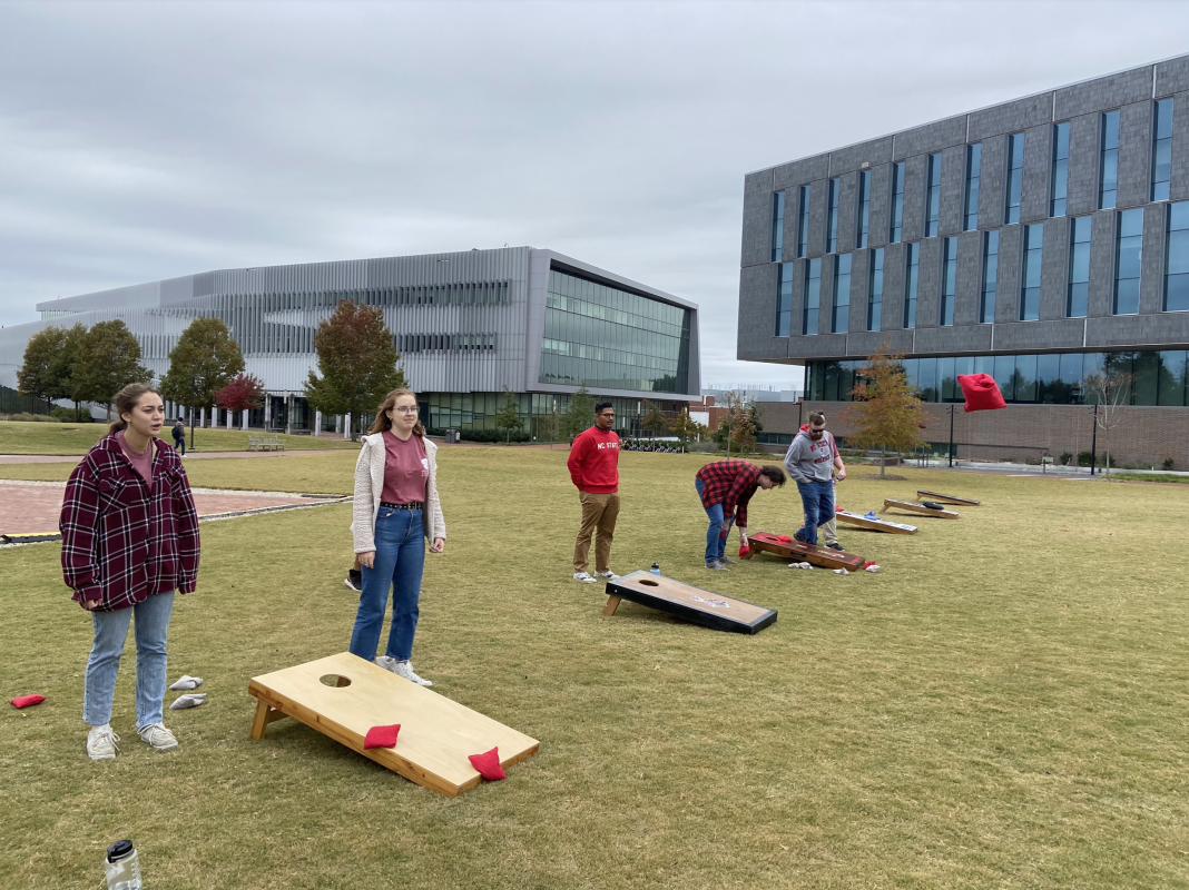 The NC State American Society of Civil Engineers (ASCE) chapter hosted a field day event with UNC-Charlotte (UNCC)’s ASCE chapter on NC State’s Centennial Campus on October 29. The event included a concrete cornhole competition, pumpkin stacking, a tour of Fitts-Woolard Hall and an employer presentation from the event’s sponsor, ARCO Design/Build.