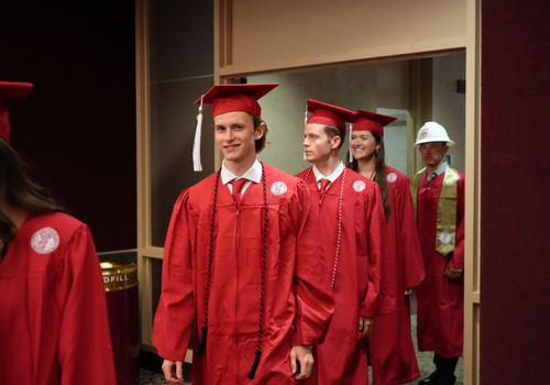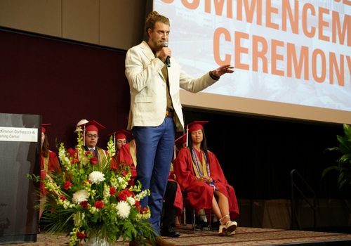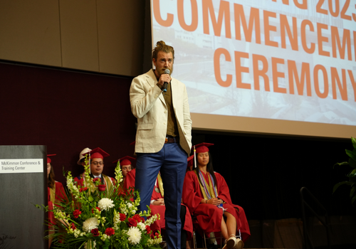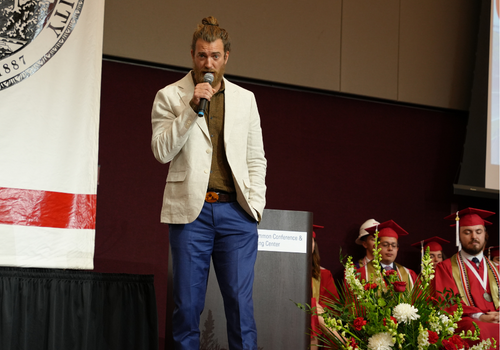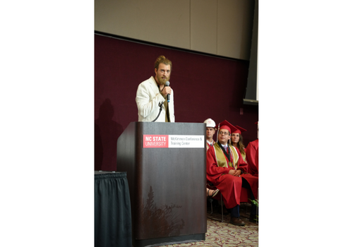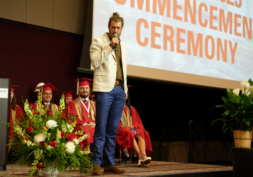 Alumnus and YouTube sensation Rhett McLaughlin (BSCE 2000) delivered the baccalaureate address, speaking on the importance of living in the moment and finding gratitude in lived experiences, even in the face of disappointment.