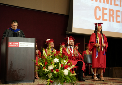 About 148 undergraduate and graduate students, along with more than 1,250 friends and families, gathered in the McKimmon Center on Friday, May 5, for the Spring 2023 Commencement Ceremony.